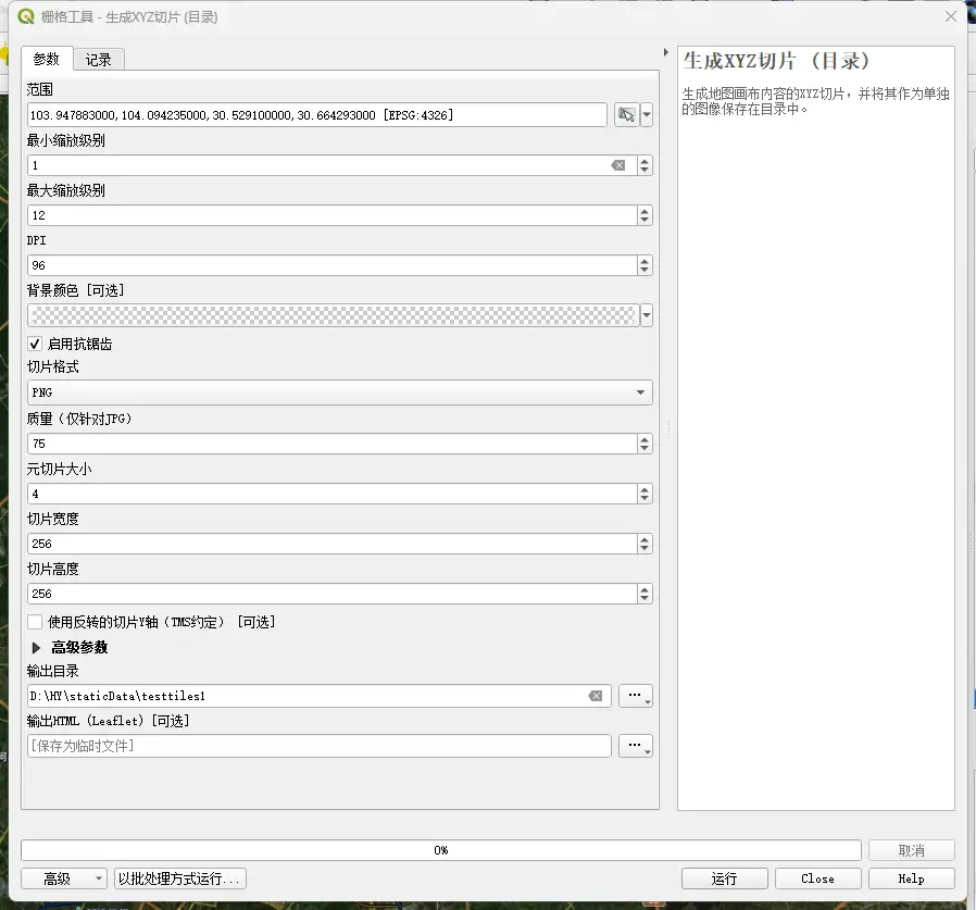 - 输出目录:即瓦片的保存路径